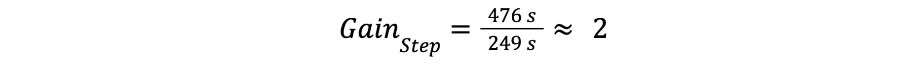 This indicates that, under the tested conditions, the total test execution time is reduced by approximately a factor of 2 when using Step.