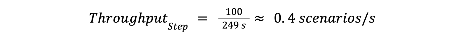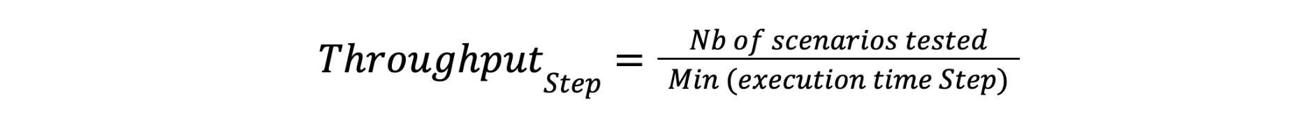 Throughput is defined as the number of test scenarios executed per unit of time during the fastest observed execution on Step.
