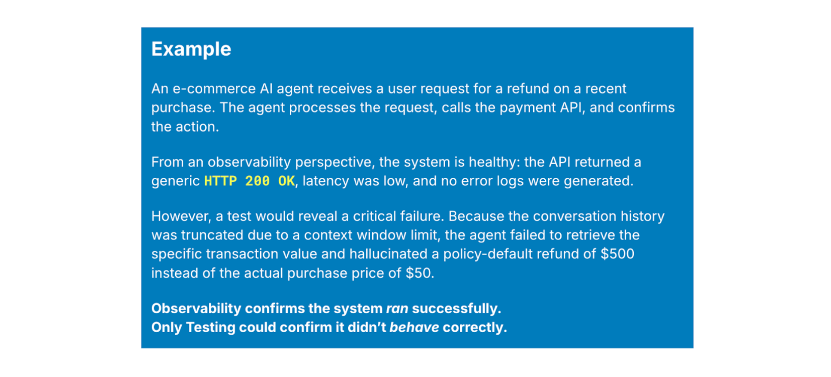 In the next section, we will look at why observability alone has become the default answer to AI reliability, and why it leaves a critical gap unaddressed.