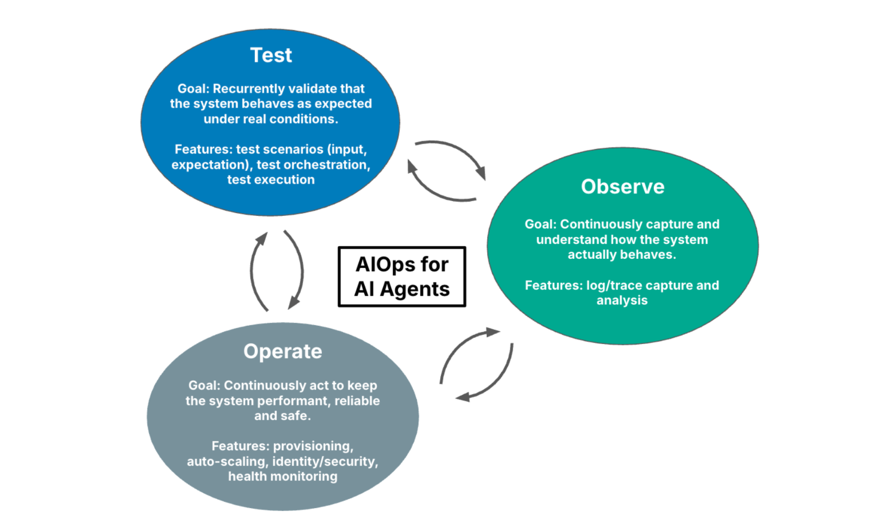 This is why testing is not simply another AIOps feature. It is the mechanism that transforms observability from passive visibility into actionable insight, and operation from reactive intervention into deliberate control. This is in line with recent AI engineering work that explicitly states that agent quality assurance requires automated testing and validation to prevent failures [9].