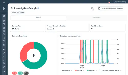 In this view, you can find reports aggregated across multiple executions of the same plan. The view shows the same content as the Scheduled Execution Reporting View, but considers both scheduled and manual executions of the selected plan. It can be accessed via the Plan List “Open plan report” action.